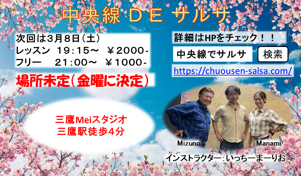 ■ 2025年3月8日(土)「サルサの夜明け」レッスン&パーティー