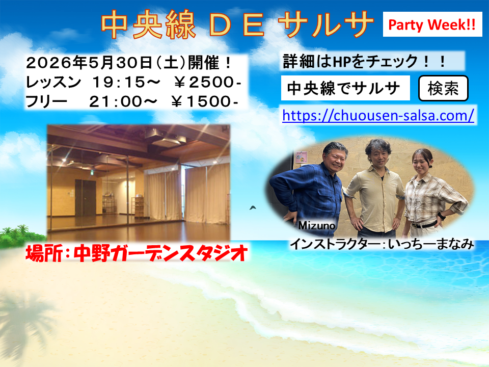■ 2026年5月30日(土)「中央線DEサルサ」レッスン&パーティー
